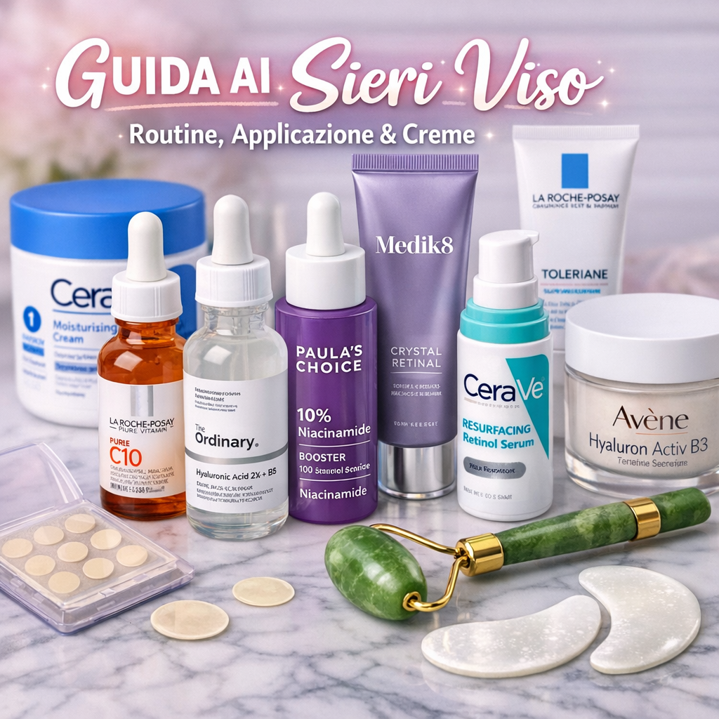 Quindi sì: oggi facciamo chiarezza. Ti spiego cosa sono i sieri per il viso, come si applicano, qual è l’ordine giusto di utilizzo, come costruire una routine settimanale sensata, come usare la crema dopo il siero, e ti lascio anche una top five di sieri viso, 3 creme viso valide, più il capitolo bonus su rullo e patch. Il tutto in modo semplice, pratico e senza il solito terrorismo cosmetico del tipo “se salti un tonico entro martedì hai perso il glow per sempre”.